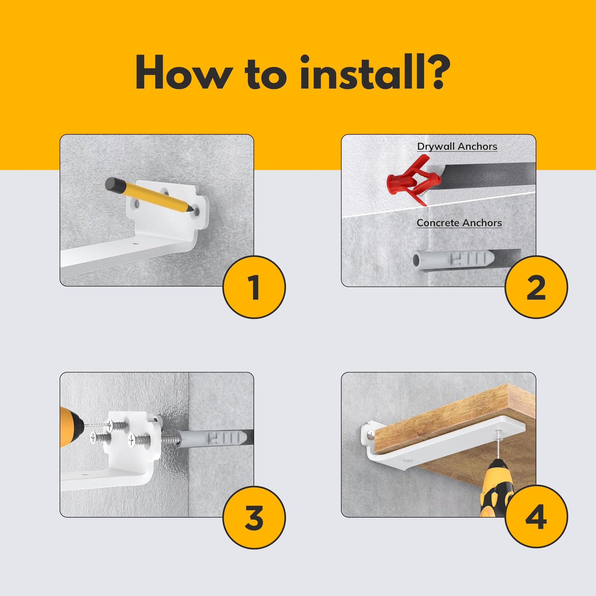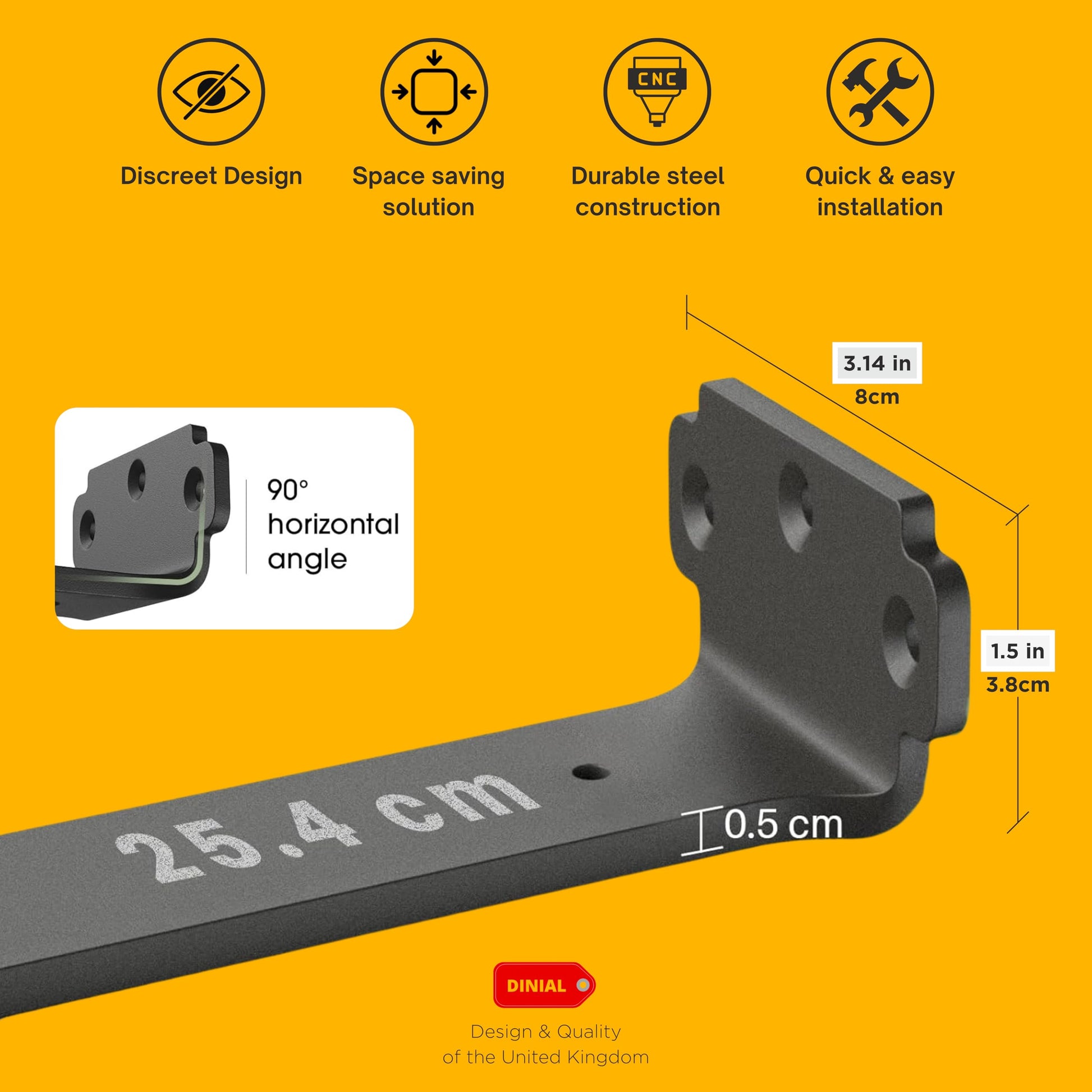DINIAL Floating Shelf Brackets, Heavy Duty Shelf Brackets for Shelves, Color Coated 5mm Metal Wall Shelf Support Brackets, 75KG Load Capacity