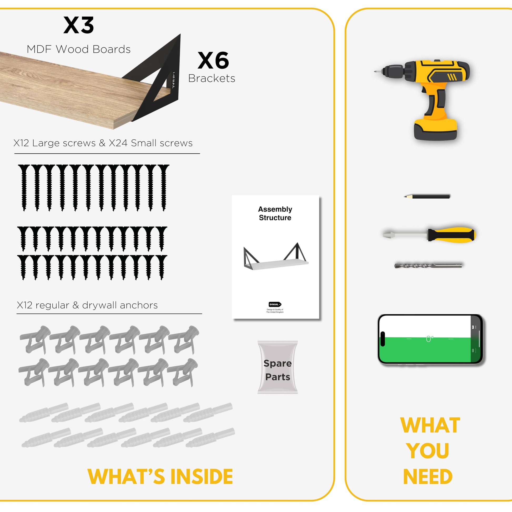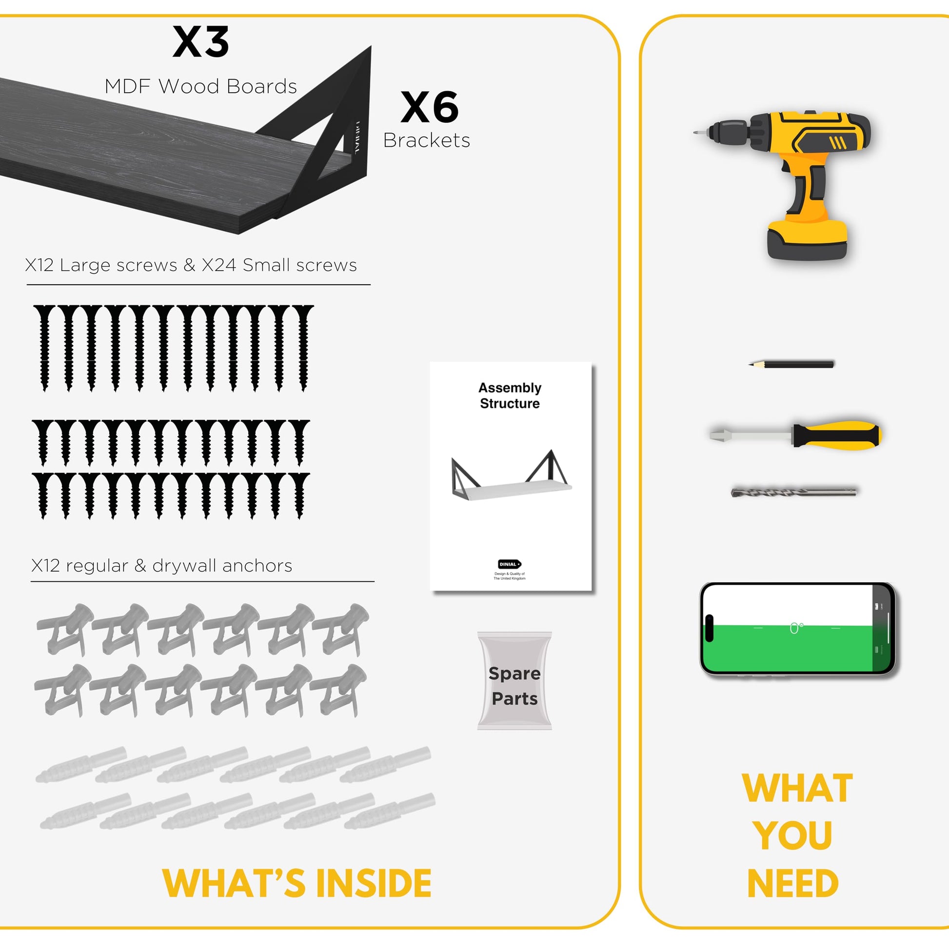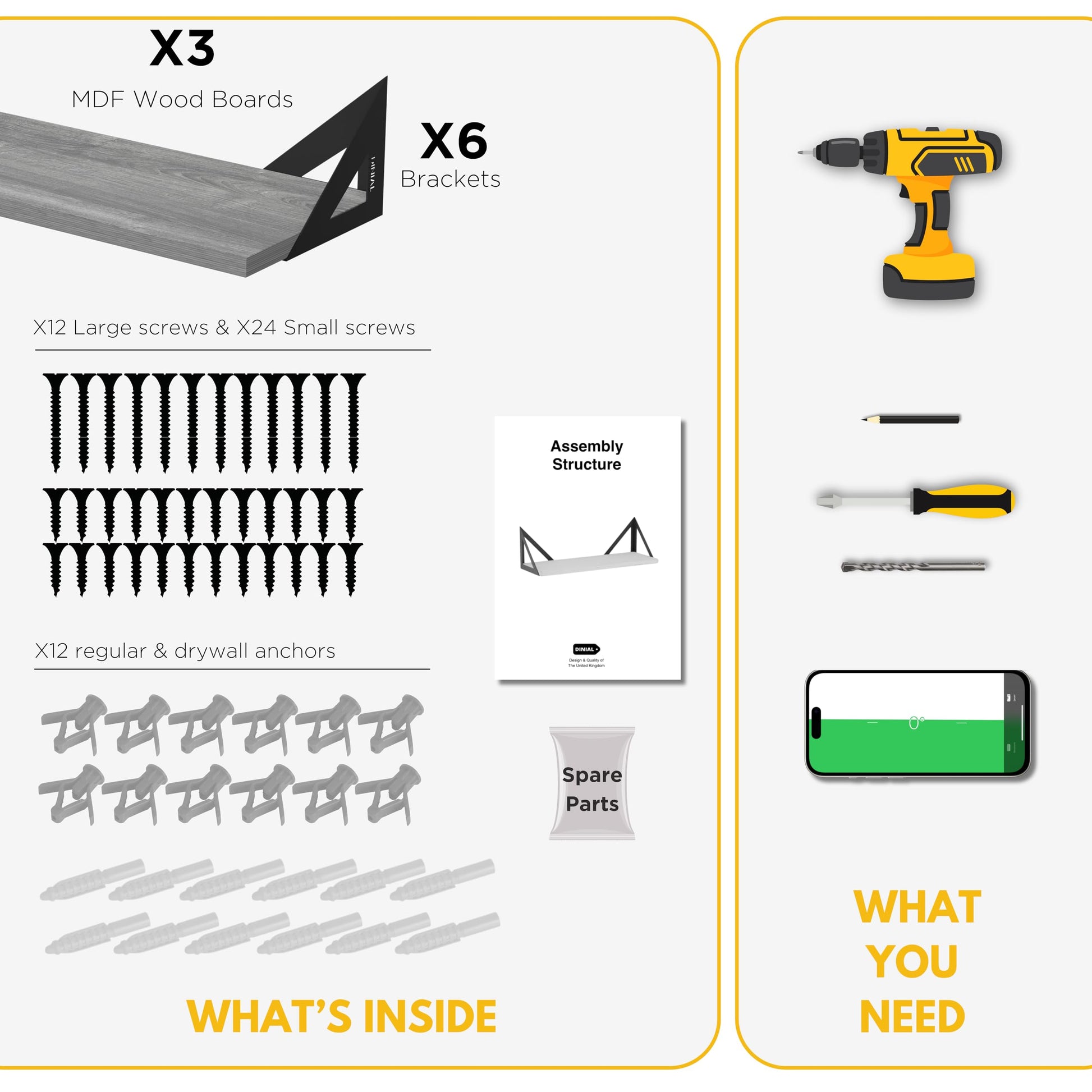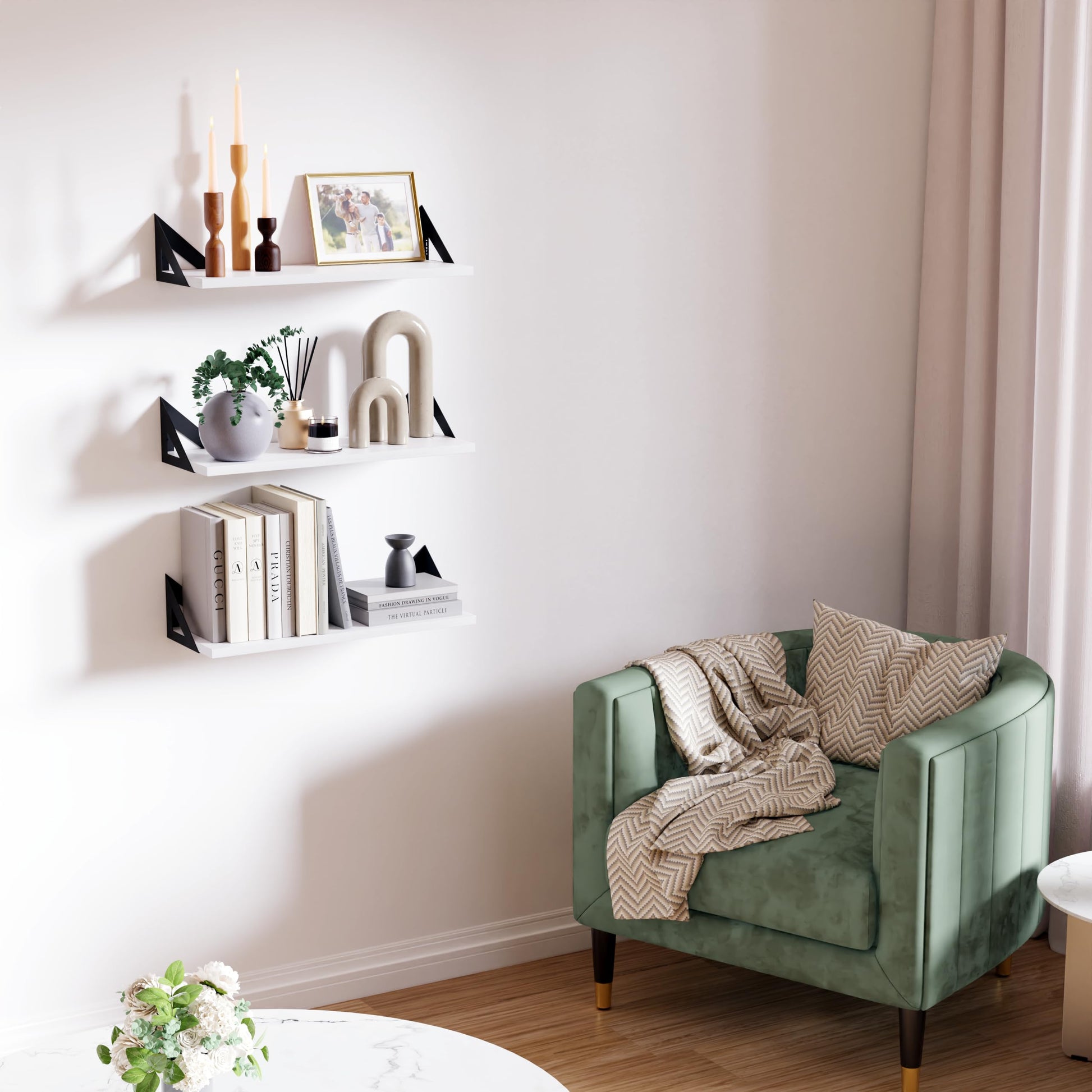 Upgrade your home's organization and style with Dinial's modern floating wall shelves. Crafted for easy assembly and premium quality, these 40x15 cm MDF wall shelves provide the perfect balance of lightweight convenience and robust strength. Each shelf supports up to 20kg, making them ideal for storing books, decorative items, or kitchen essentials. Whether you're enhancing storage in your living room, bedroom, kitchen, or office, Dinial shelves come in 5 beautiful colours, offering a sleek, modern look that complements any décor. The metal brackets, available in matte black or white, add a sturdy yet stylish touch to the design, ensuring these shelves are both functional and decorative. Designed in the UK, Dinial shelves are crafted from high-quality MDF to ensure durability and long-lasting use. Installation is a breeze with the included hardware and detailed manual, allowing you to set up your new floating shelves in minutes. Perfect for anyone looking to add both function and style to their home, these versatile display shelves are the ideal solution.