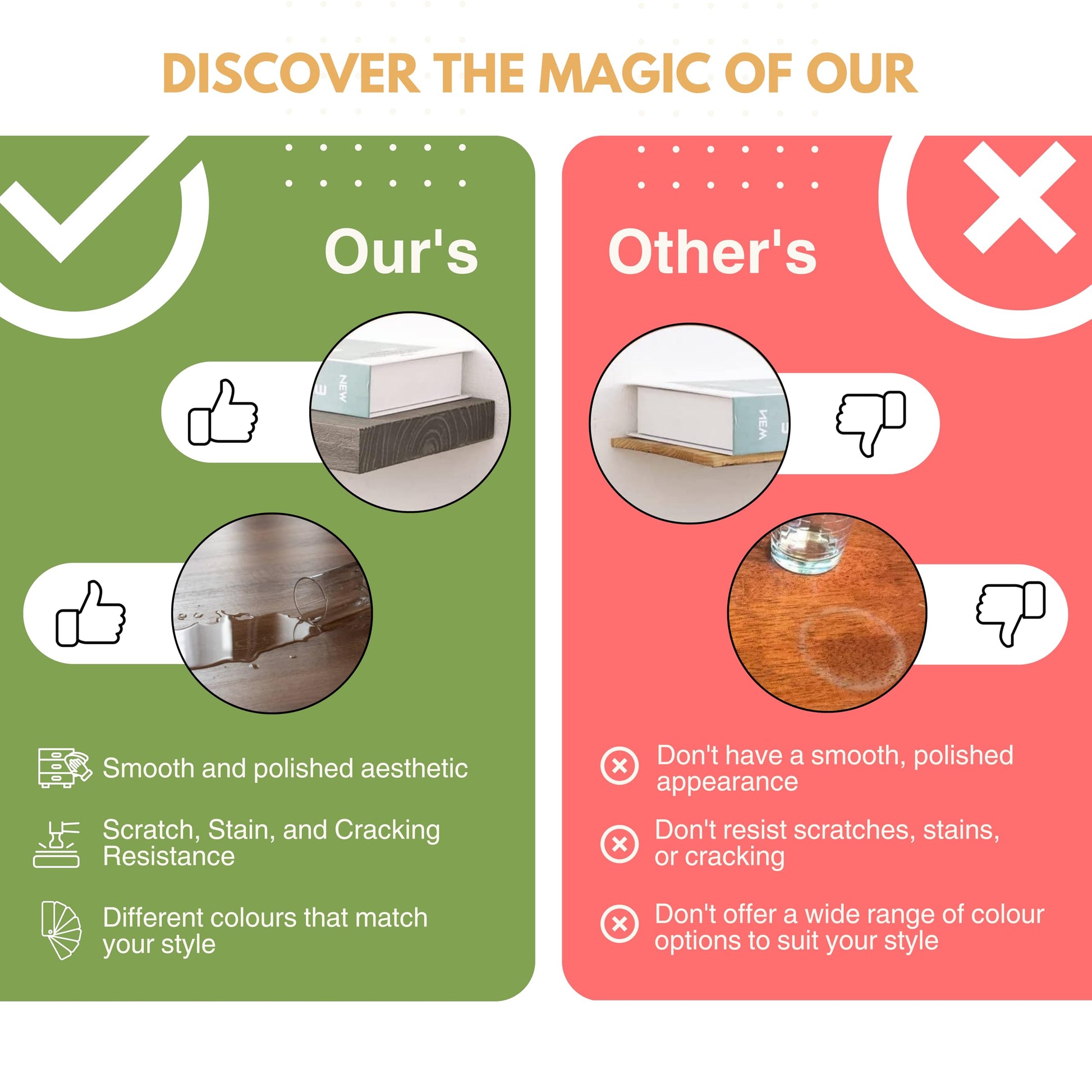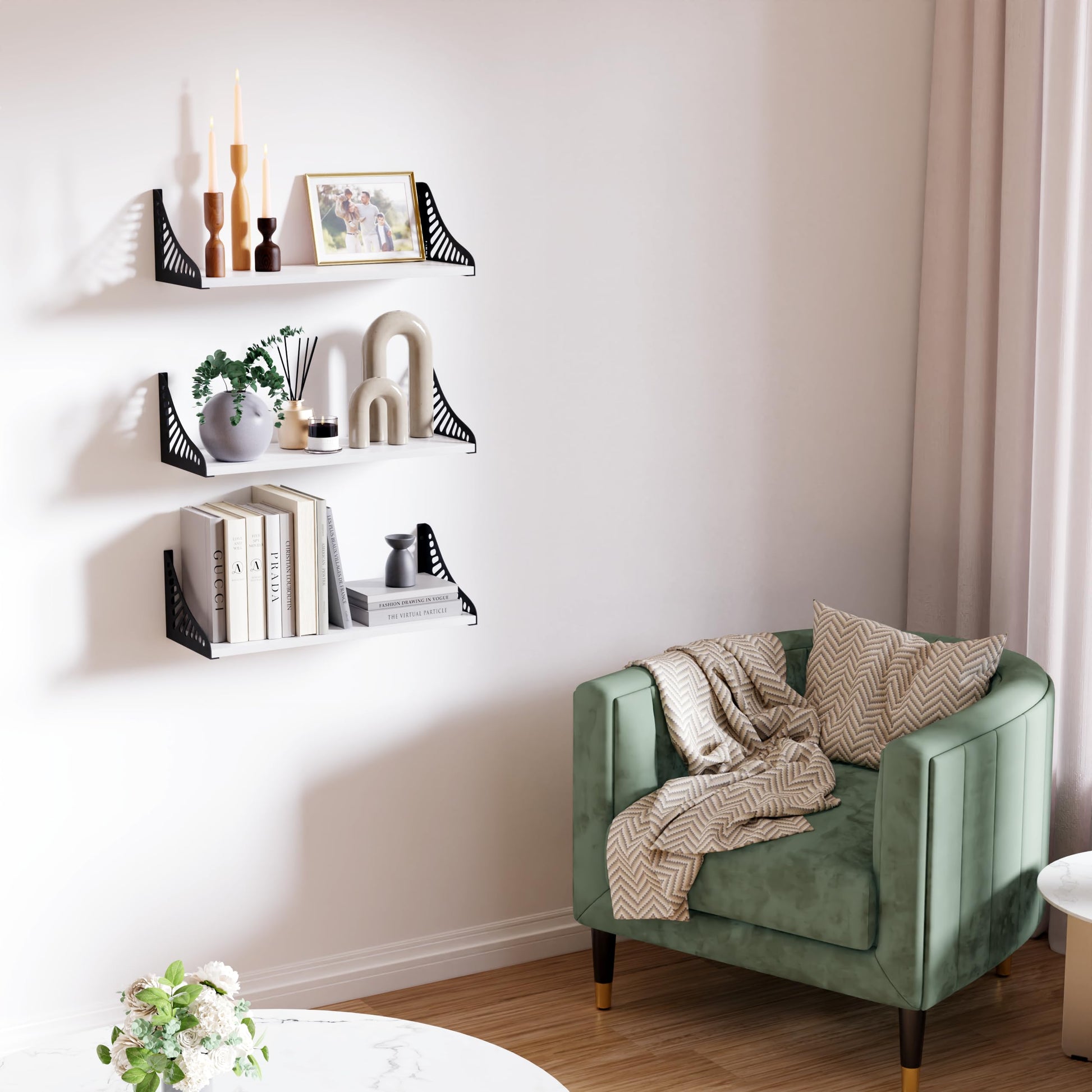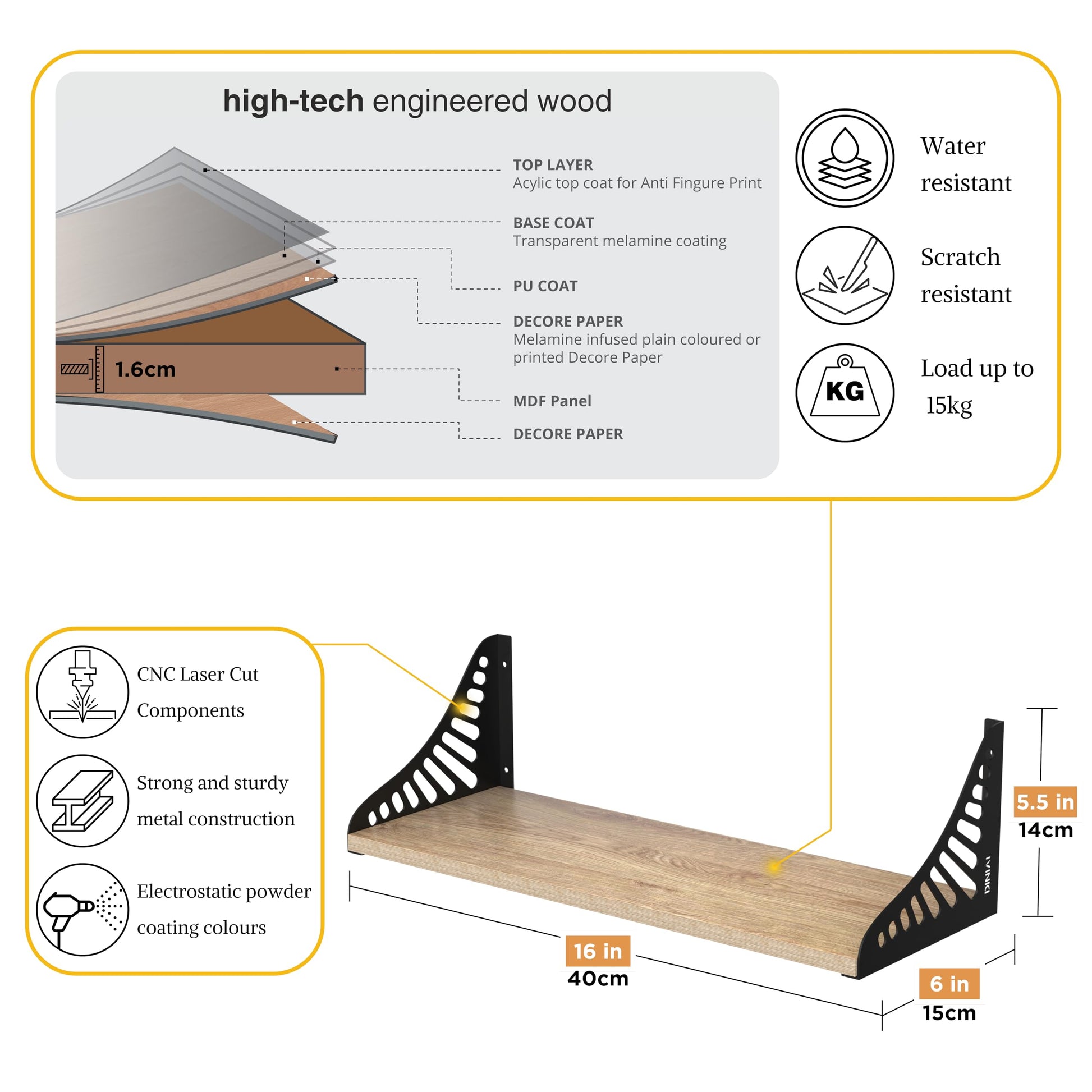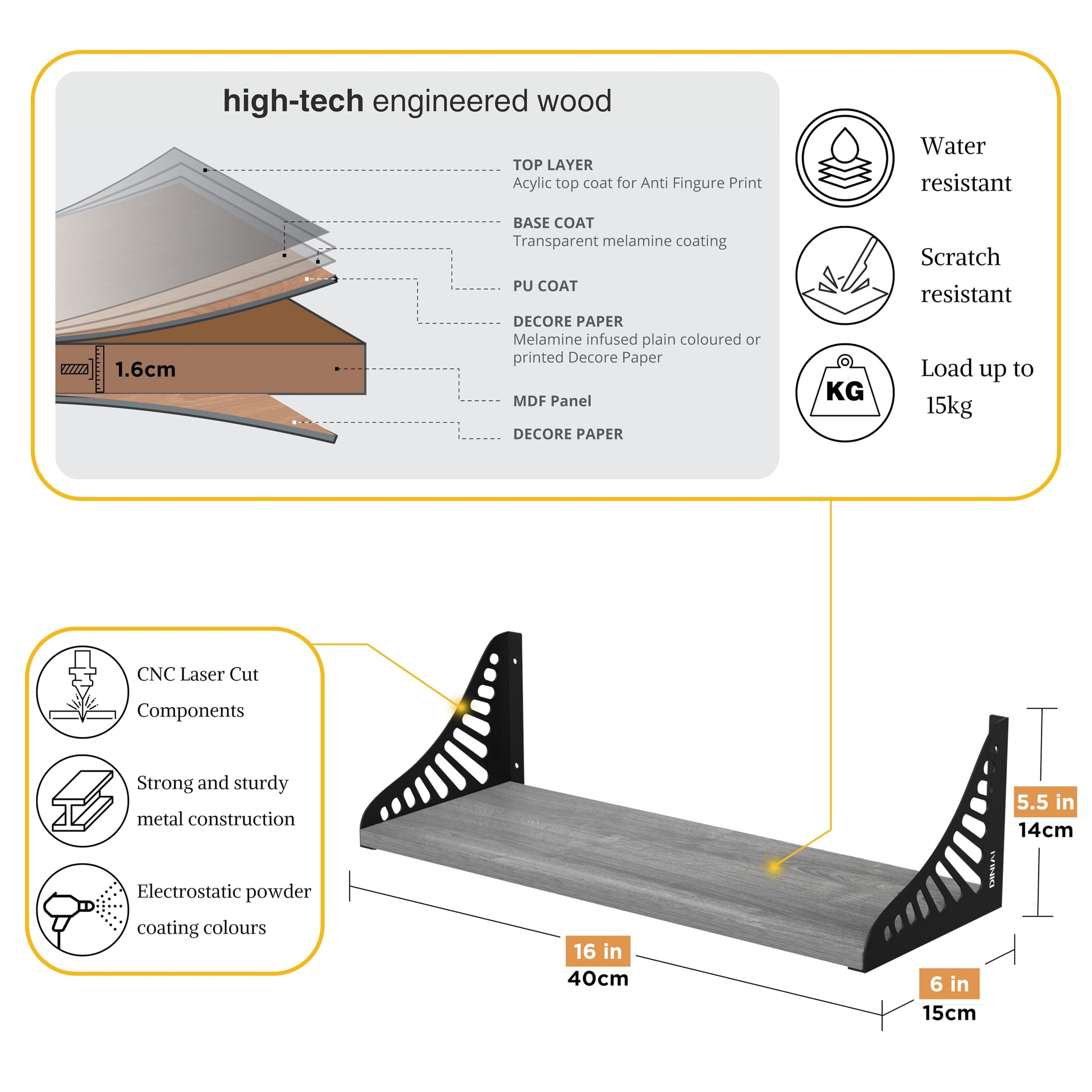 Upgrade your home's organization and style with Dinial's modern floating wall shelves. Crafted for easy assembly and premium quality, these 40x15 cm MDF wall shelves provide the perfect balance of lightweight convenience and robust strength. Each shelf supports up to 20kg, making them ideal for storing books, decorative items, or kitchen essentials. Whether you're enhancing storage in your living room, bedroom, kitchen, or office, Dinial shelves come in 5 beautiful colours, offering a sleek, modern look that complements any décor. The metal brackets, available in matte black or white, add a sturdy yet stylish touch to the design, ensuring these shelves are both functional and decorative. Designed in the UK, Dinial shelves are crafted from high-quality MDF to ensure durability and long-lasting use. Installation is a breeze with the included hardware and detailed manual, allowing you to set up your new floating shelves in minutes. Perfect for anyone looking to add both function and style to their home, these versatile display shelves are the ideal solution.